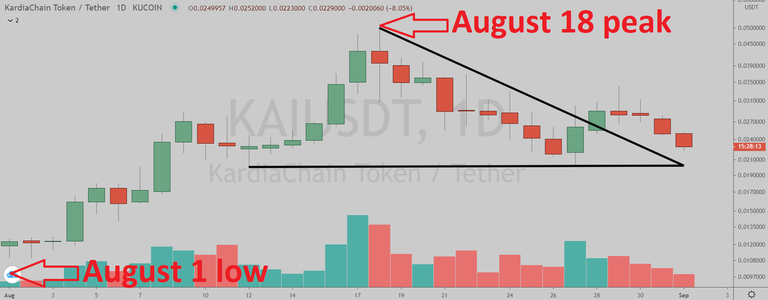 KardiaChain (KuCoin: KAIUSDT) daily chart by Tradingview.