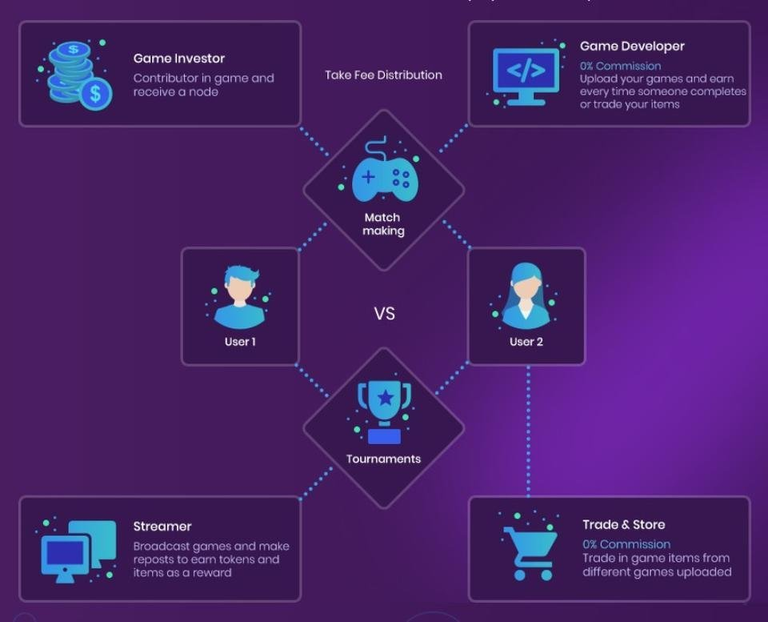 The platform offers rewards to gamers, and developers get the best games. Awards in the form of tokens can purchase gaming devices, vouchers and prepaid cards on the platform