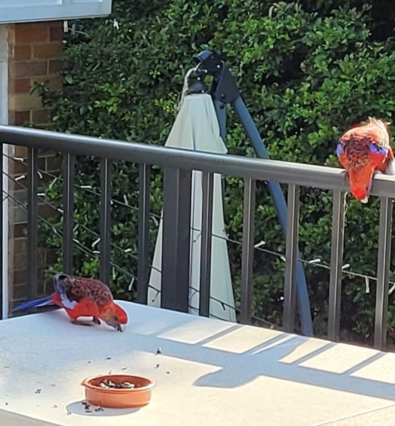 Even though crimson rosella was lost for a while - on that day, he/shee bought the baby to show it the ropes!
