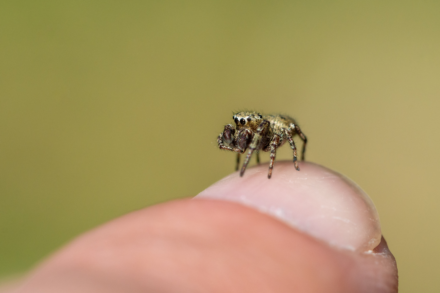 That's also a cute little jumping spider. Would be cool to jump like them. Scaled to our size we could make jumps 20 to 30 meters wide.