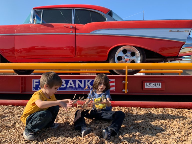 This is @theharvey standing by his Grandpas car at the gate we entered through.