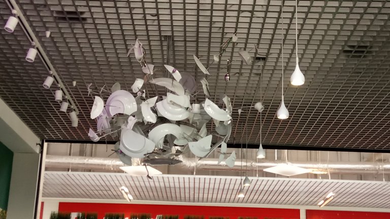 III - Na to zlecenie czekałem koło 20 minut. Pogoda była jednak taka, że usiadłem sobie w słońcu koło jeszcze istniejącego Piotra i Pawła. Nadrobiłem społecznościowe dyskusje w komórce aż system zawołał mnie do restauracji na granicy Oliwy. Z zupami miałem jechać do centrum tej dzielnicy. Zauważyłem, że w restauracji mają fajny żyrandol w formie kilkudziesięciu potrzaskanych talerzy. Jechałem do domu, który znajduje się koło potencjalnego parku (może budżet obywatelski?) także porobiłem trochę zdjęć. Piękne miejsce i klimat starej zabudowy.