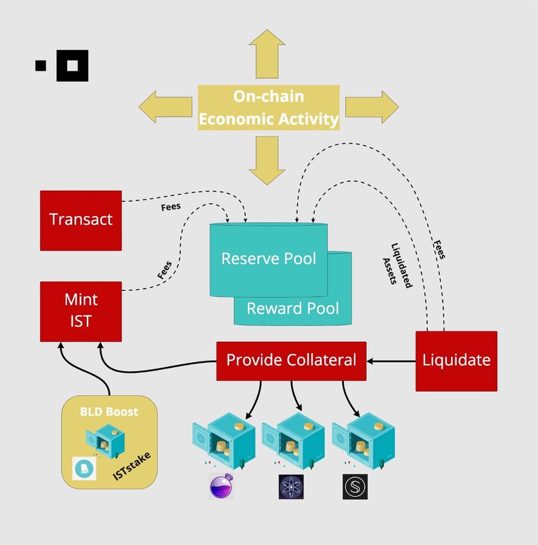 However, up to a small percentage (likely to be set at 5% or 10%), BLD stakers can lock-up their assets and mint IST against it utilizing the ISTstake process in a BLD Boost contract. Future staking rewards pay-off the debt incurred by minting and receiving IST. Those participating in BLD Boost can not un-stake and can not withdraw their rewards until the IST debt has been repaid (including fees).