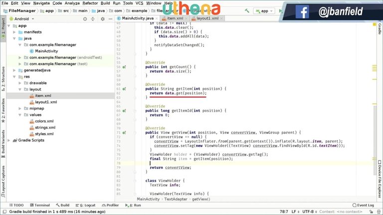 This file manager will enable us to search through directories and files and different file types. We’ll be adding features and improving the UI and so on. While the project loads, we can say that this project will be very, very interesting because we will learn how to use ListViews which are kind of scrolling views in which we will display all your files, folders, and all that kind of stuff. We will also use Java logic and mainly everything will be done in Java or in XML.