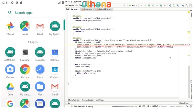 I will run the app on my emulator. You can do it on your emulator or your real device if you want. I’m compiling. As you can see, Gradle builds running and will be sent to the emulator if it doesn’t find errors in the code during the compilation time.