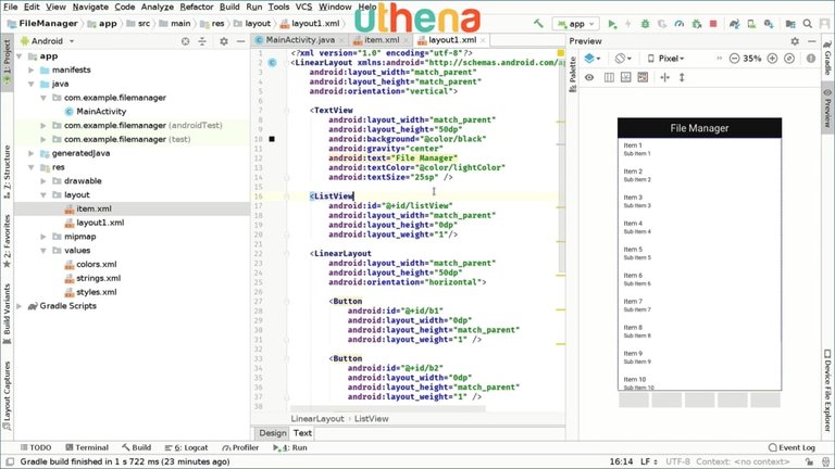 Would you like to continue learning about the Code, an Android File Manager and Explorer App in Android Studio Today Course? If you are interested will you please buy the complete course, Code an Android File Manager and Explorer App in Android Studio Today Course, on the Uthena Education Platform..