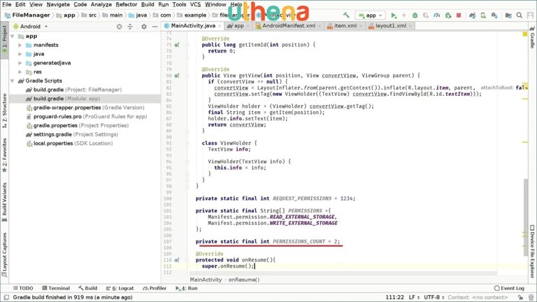 In this tutorial, we will learn how to setup up the permissions to read and write to the storage of the device. We will also learn how to get a list of the files from a directory and start displaying them on our file manager application.