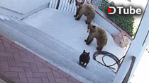Ce n'est pas moi non plus qui irais les chasser de mon jardin... Je filmerais tranquillement la scène (comme le propriétaire du chien) derrière la porte en sirotant mon Lagavulin.