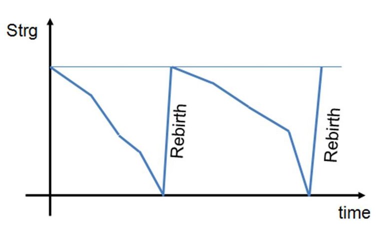 Over long term, the phoenix is thus perfectly robust regarding his live. Death and rebirth viewed over a long time thus just form an infinite long horizontal line.