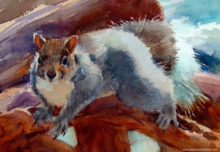 ”Sedona Squirrel” 7”x11” (#3031) watercolor on Arches by Lee Gordon Seebach