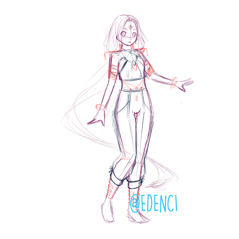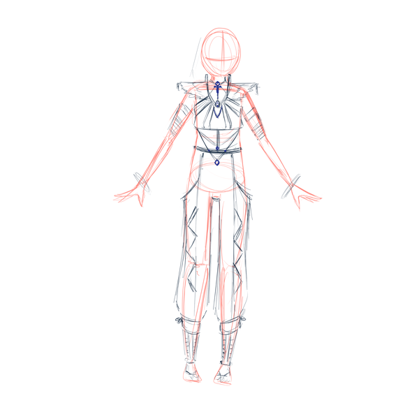 So I quickly sketched a body and drew the outfit I had in mind on it for reference. I had a hunch that told me "this is it."
