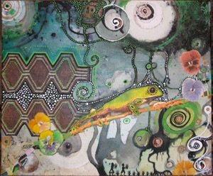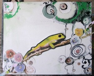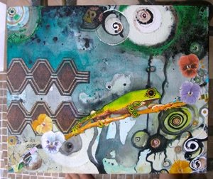 This artwork celebrates the magic and wonder of freedom in nature. In reaching out and connecting with The Frog in that spirit of freedom I tapped into a vibrant, living symbol of all that is right and natural and good on this earth. Every moment I spent working on this artwork was invested with that energy of connection and kinship, and it is this that I feel alive and resonating within me to this day, every time I look upon it.