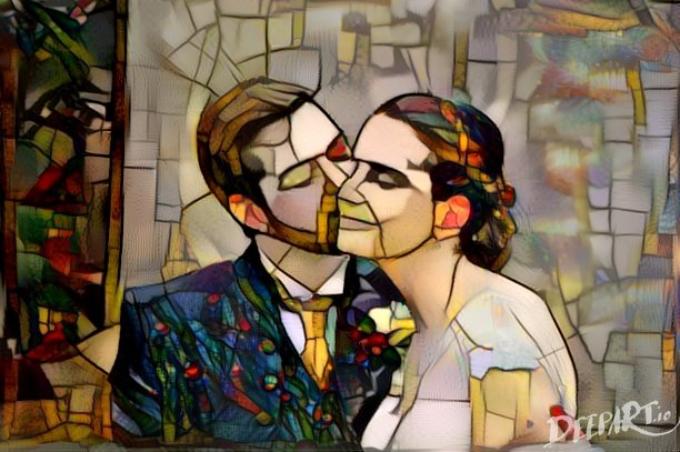 In our heads, we are able to identify the wedding moment and the stained glass style, in order to re-create the image in stained glass.