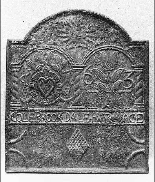 Created in 1763 on Cast iron by Colebrookdale Furnace,"Fireback" is an artpiece of 29 1/2 x 34 1/2 in. (74.9 x 87.6 cm).