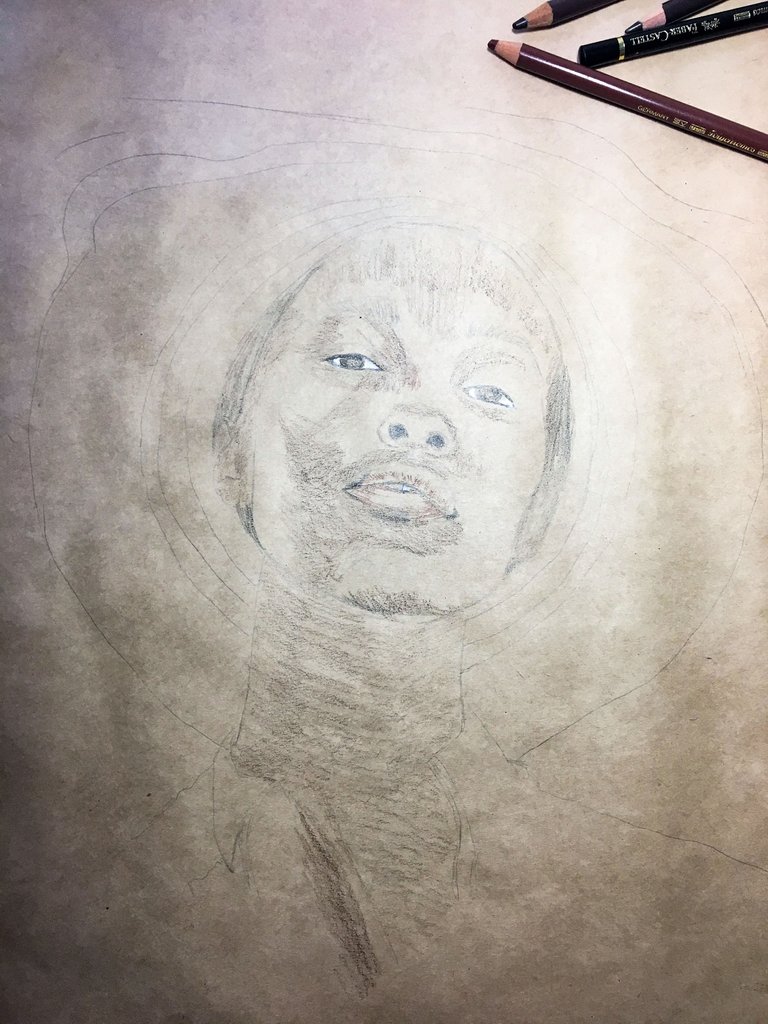 I start putting color into the work. Remember, I already drew on Kraft paper? Basically, the color of the paper was the color of the skin. I was just adding light and shade. But now, I'm making a contrast. Paper color-highlight color.