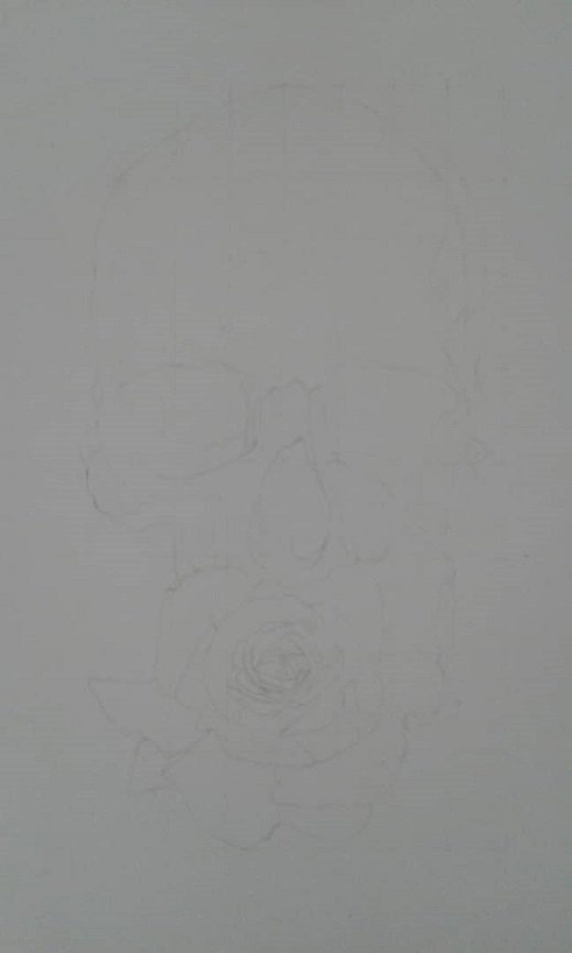 For this work look for the references through Pinterest, they are a rose and a separate skull, which I edit and I compose with the help of Adobe Photoshop, where with the tool of selection and blurring edges, eliminate the lower jaw and part of the jaw superior of the skull, to put it on the rose and give the effect or illusion that they form a single element. Then I printed the reference and began taking the most approximate measurements of the skull to then work from the technique of the grid, I wanted to make my design as accurate as possible.