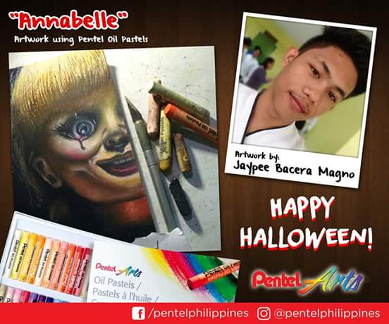 Annabelle was featured!artjay (44)in #artguildph • 8 years ago Thank you so much Pentel Philippines for featuring one of my oil pastel artwork, Annabelle! Have a spooky week everyone☺! FB_IMG_1509673568846.jpg #philippines #steemph #art #drawing
