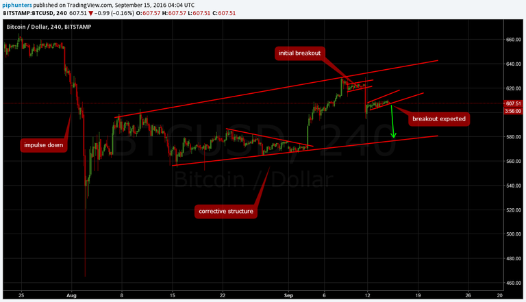 Nothing much has changed since my last post regarding bitcoin, it is still in the correction slowly going up ready to break to the downside anytime now.