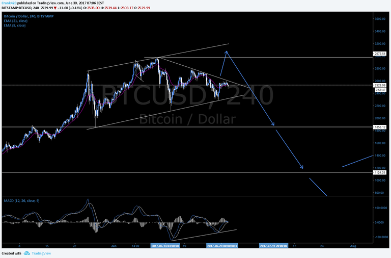 There is a possibility that we could see one more impulse in BTCUSD to the upside to complete the pattern. This will probably break the last high and then we will see a deeper pullback before the next impulse up again. My opinion would be to buy the breakout, then take profit as soon as the previous high is broken, because you don't want to be in a long trade when the deeper pullback come.