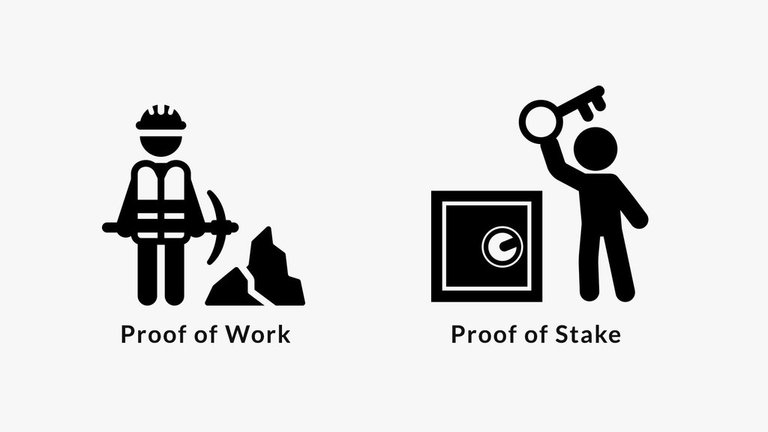 With PoW, the miner who puts in the most computing power to solve a block, gets the coinbase reward. With Proof of Stake, there is no reward for creating a new block. The person with the biggest Stake (or richess), can create the new block. This person receives a reward for processing the transactions on the blockchain. A bit like PoW, to attack the blockchain (e.g. create fake coins for yourself) it would require 51% of all the coins in circulation.