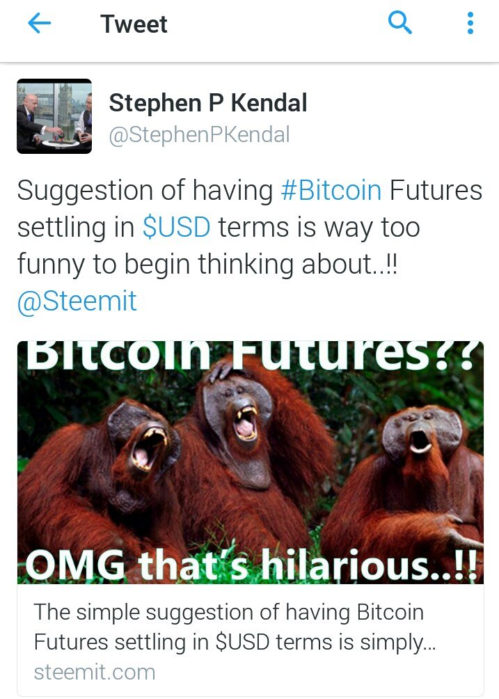 The suggestion of having #Bitcoin Futures settling in $USD terms is simply way too funny to begin thinking about..!!