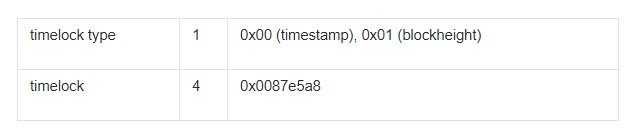 - 1 — for blockheight type timelock value (if timelock type=1, timelock value shall be specified with blockheight).
