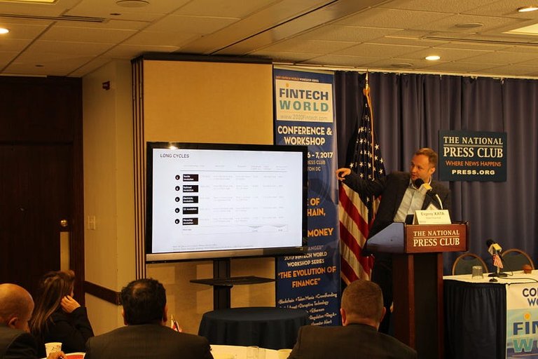 Whilst in Washington, Evgeny presented his vision of economics of evolution: how various technologies (textiles, railroad, electricity, oil and automobiles, microchips and now blockchain) bring us into different economic paradigms, with Evgeny demonstrating an outlook on how the current evolution will impact the financial world and its current cycle. The US capital gave CyberTrust’s Managing Director the chance to speak with chief officers of fintech companies, such as LMG’s Vincent Molinari and Emerging Star Capital’s Robert Levin, amongst many others.