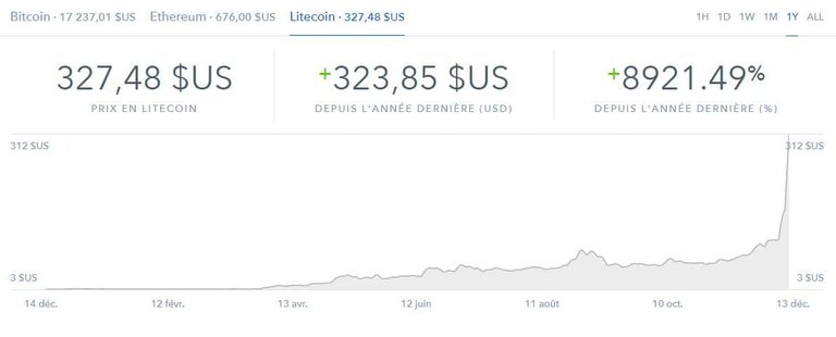 Litecoin is not as well known as Bitcoin, yet its value has exploded by more than 8000% in just 1 year. This is an incredible feat for a virtual currency that is much less visible than the Bitcoin, which remains the most popular. Its inventor, a former Google alumnus, has something to be particularly satisfied with the success of its creation.