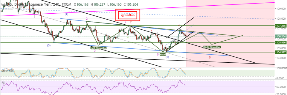 Two alternative counts for UJ currently. If we are done, I would wait for the potential IHS -2.03% to be form before taking a long trade, alternatively, we could be at wave 4 if the ED. If not, wait for a strong breakout if this wedge , retest then Long.