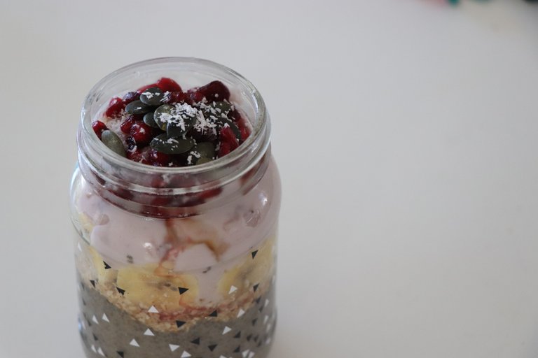 i added on a layer of gluten free oats, banana, soy yogurt, and finally cranberries for the antioxidant boost :) optional: add some pumpkin seeds and a sprinkle of shredded coconut for some crunchy and creamy flavour ..try the recipe yourself and let me know how yours turned out ! !