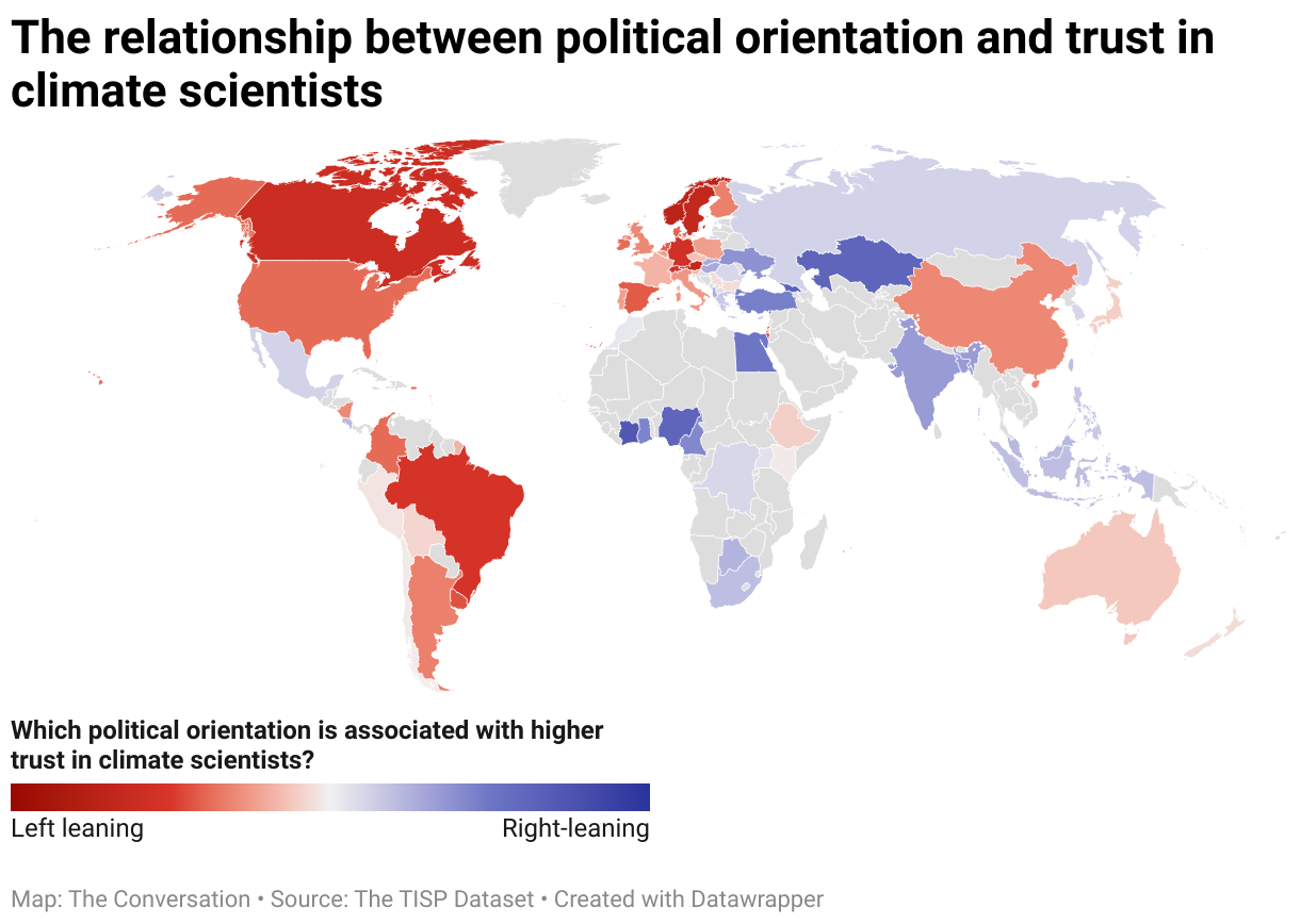 Political orientation was a key factor either: right-leaning individuals in many Western countries expressed lower trust in climate scientists. However, in some Asian and Eastern European countries, the opposite was true: