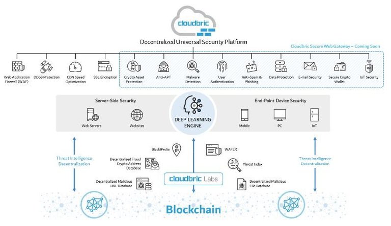 Cloudbric - универсальная платформа для безопасности, основанная на технологии blockchain, предлагающая набор готовых решений и использование искусственного интеллекта. Миссия компании состоит в том, чтобы революционизировать кибербезопасность, сделав ее доступной для всех пользователей через децентрализованную платформу. Платформа предназначена для широкого круга пользователей и включает в себя безопасность веб-сайтов, ПК, мобильных устройств и криптовалютных активов.