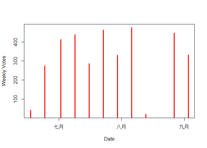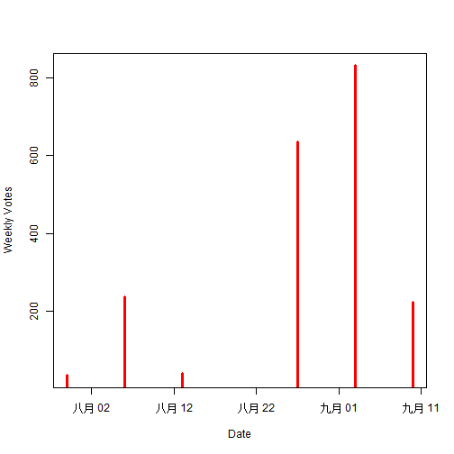 下图是 @mrspointm 发布投票(点赞)的时间趋势图。