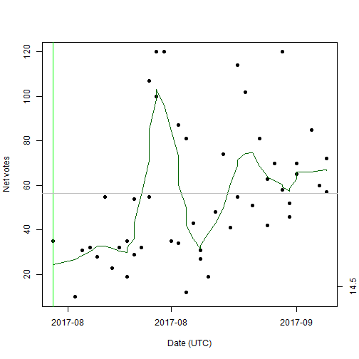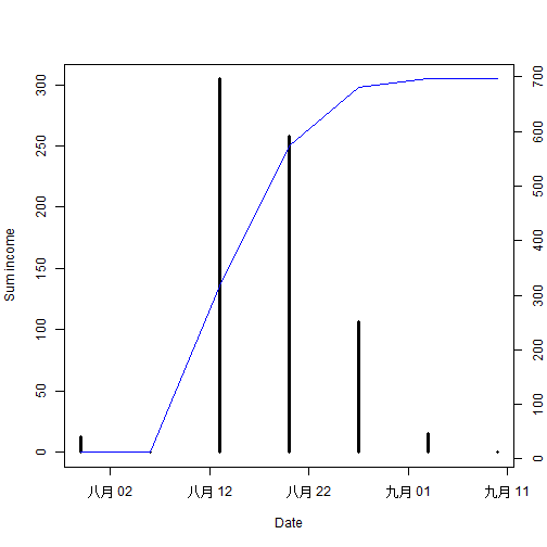 下图显示的是每帖收入的时间趋势。