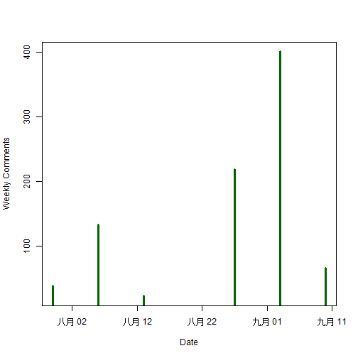 下图是每周发表的评论总数。