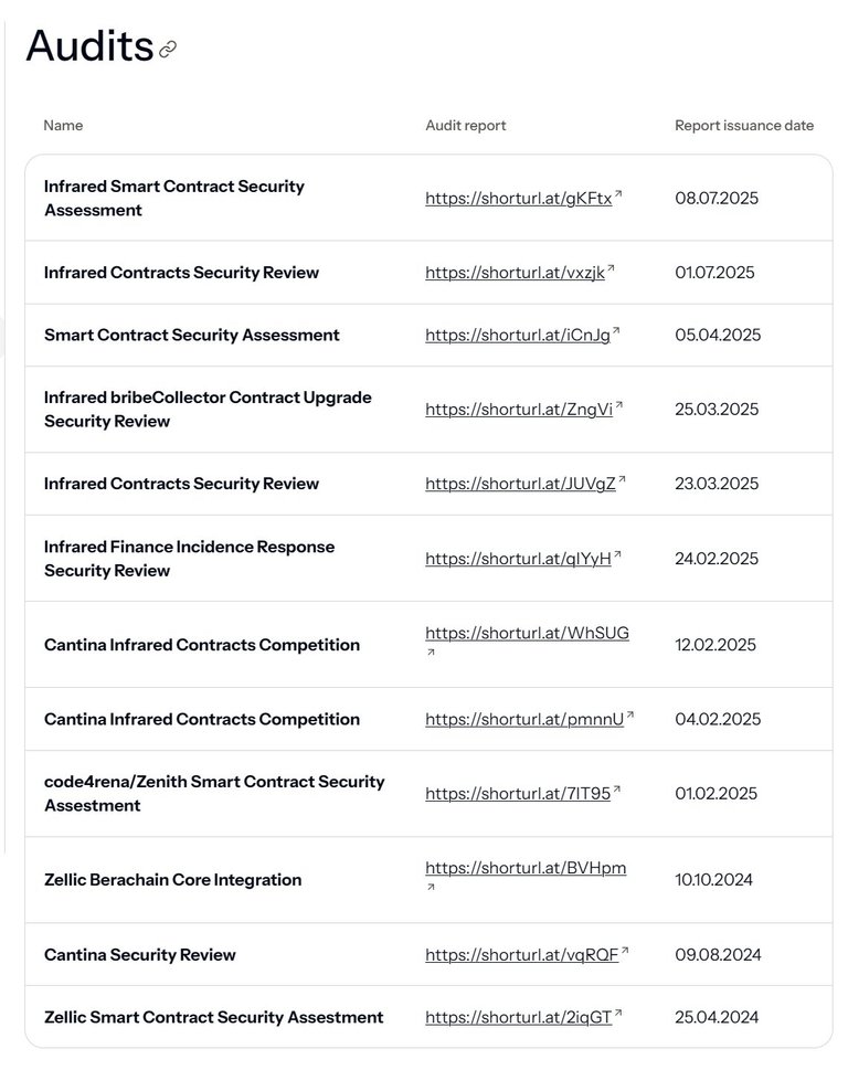 最近2份审计报告分别发布于2025年7月,审计机构分别为Cantina和Zenith。
