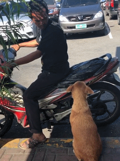 宠物狗主人:上来,摩托车带你去兜风……狗:小问题,看我矫健身姿,完美落地,啊,不对,看我完美落摩托。