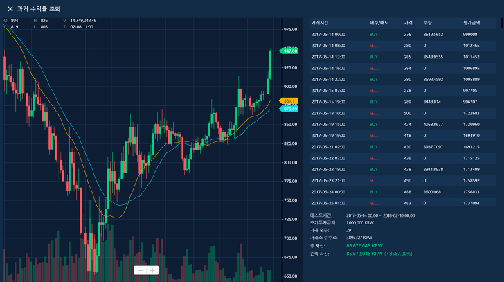 백테스트도 가능하며. 총 자산을 볼 수 있습니다.