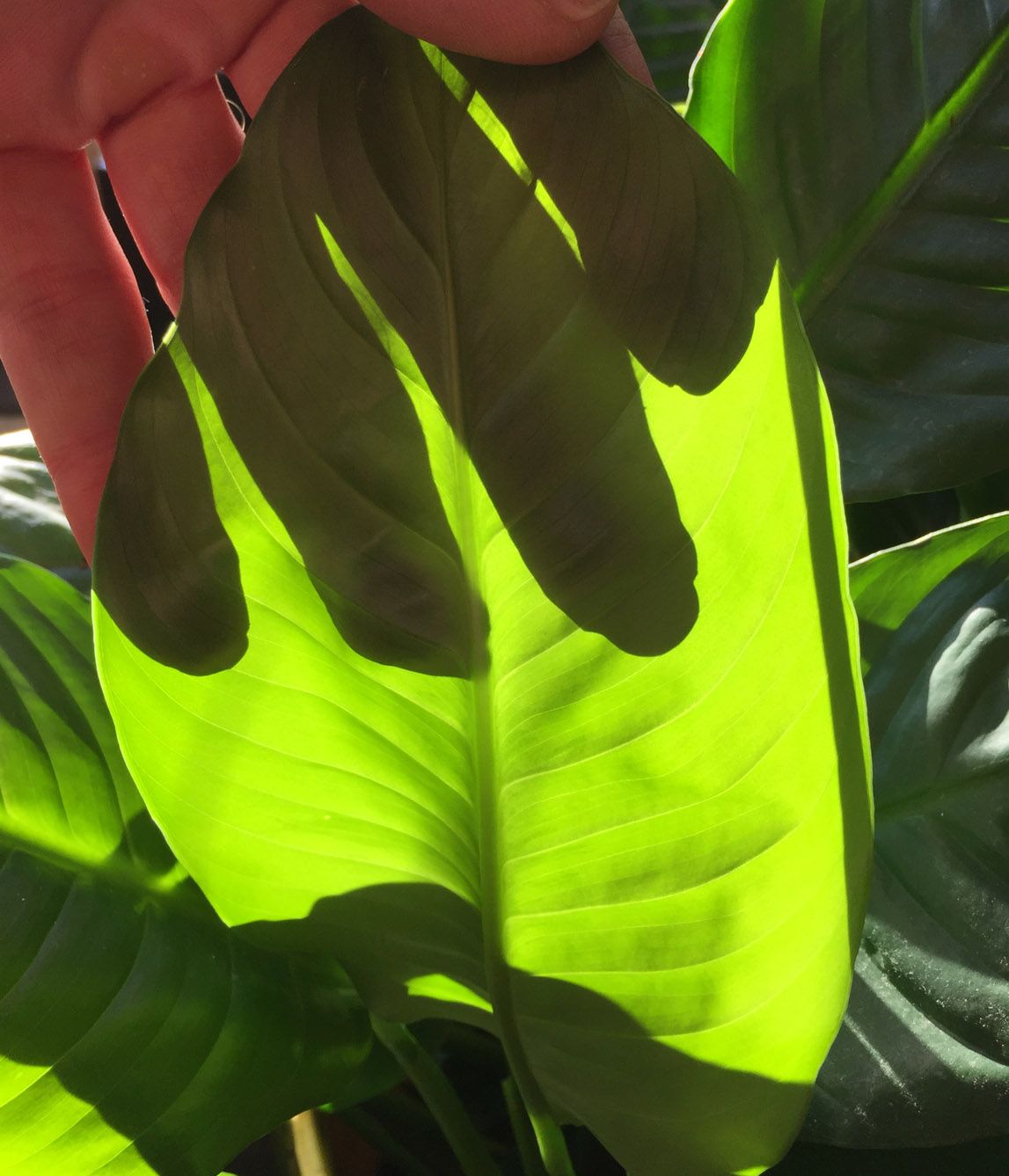 a backlit leaf.. eclipsed by a human hand