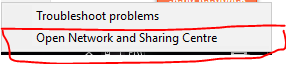 Go to your network icon and right on it then click on Open Network and sharing Center