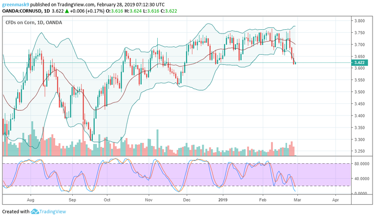 Corn has been going mostly sideways for a few weeks with minor uptrend. It seems it changed to downtrend now, even though seasonality would point up in this part of the year.