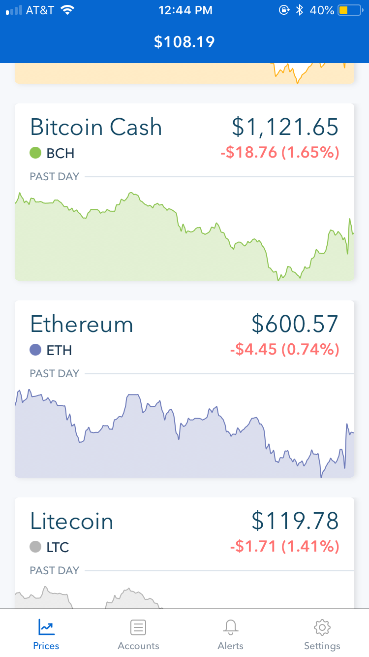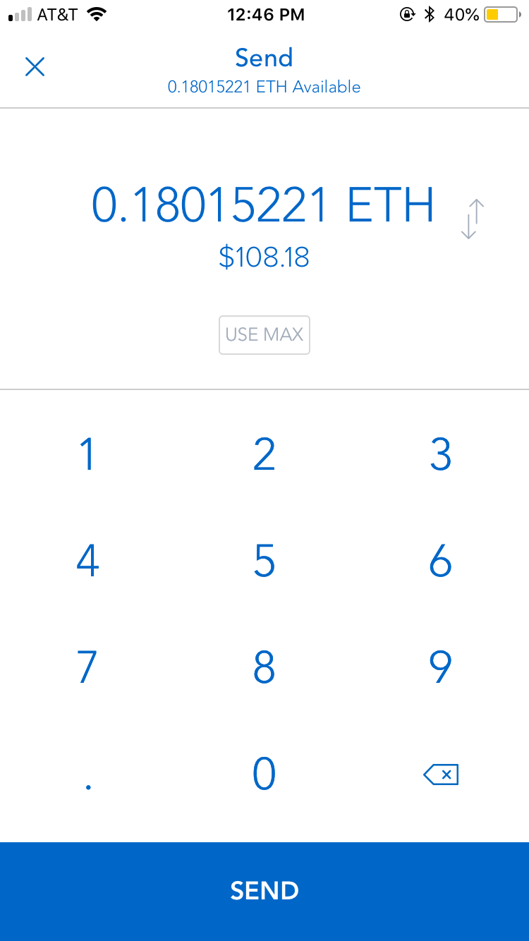 Step 3: You will be able to see your Ethereum balance. I currently have 0.18015221 ETH which is worth $108.19. Click the arrow in the top right corner.