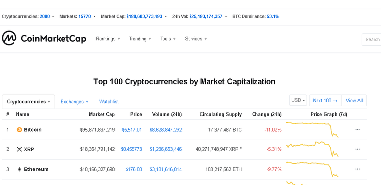 If we look at data from Coinmarketcap.com at this time, it can be seen that the decline by decline is significant. At present the total market capitalization of all crypto currencies is $ 180 billion, and the psychological limit is $ 150 billion.