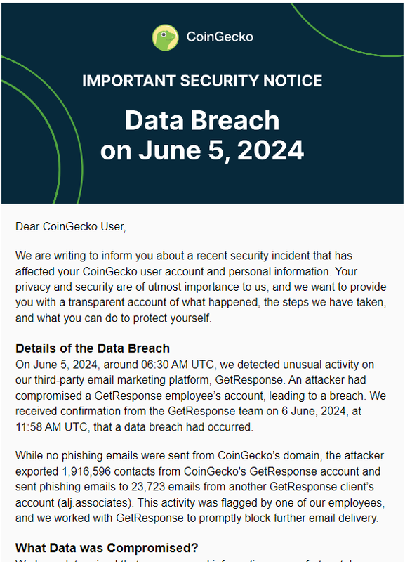 Anyone see that CoinGecko is notifying users of a data breach?
