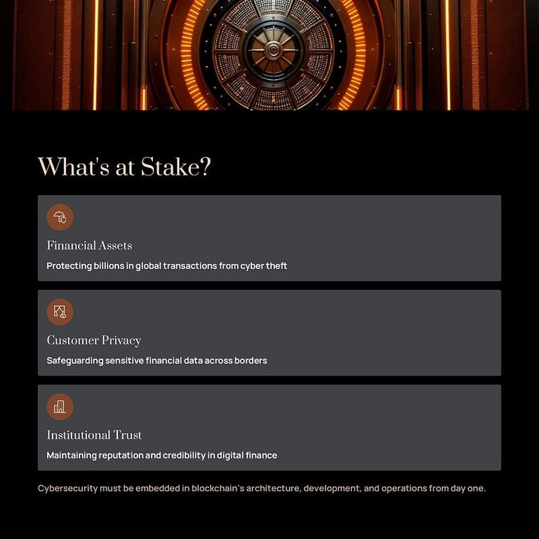 Blockchain technology will bring great benefits to the financial sector, including lower costs and faster cross-border transfers, but it will become a target for cybercriminals. Cybersecurity must play a strong role in its architecture, development, and operations to protect financial assets, customer privacy, and intuitional reputations.