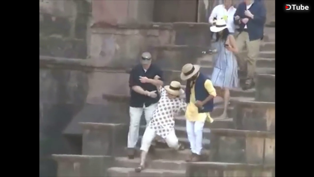 She walks like my 1 year old does, and like Hillary needs a hand to get back up.