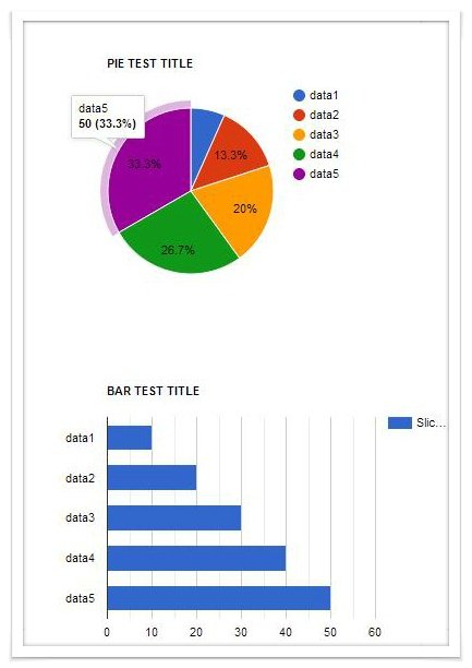 위 결과 처럼 Pie와 Bar Chart가 두개가 같이 출력됩니다. 다른 차트도 마찬가지이고 다른 차트를 가지고 몇개 더 추가해서 결과를 출력해 보세요.