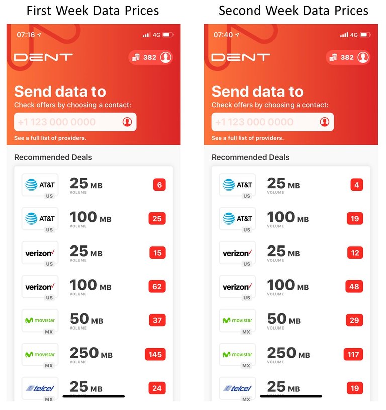 -> 덴트 코인 1주일전 가격비교 사진이며 링크를 타고 들어가 확인하시면 더 적은 덴트로 같은 양의 데이터를 구매하는 것을 볼 수 있습니다.