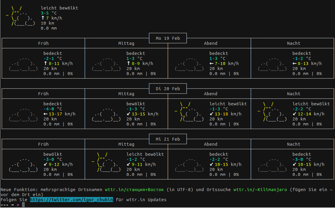 wttr ist ein echt nettes Tool, dass ich zwar schon kannte, aber trotzdem toll, dass du es hier zeigst!