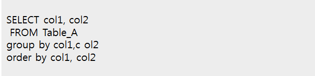 Group by : 그룹핑 작업 + 정렬 작업 수행